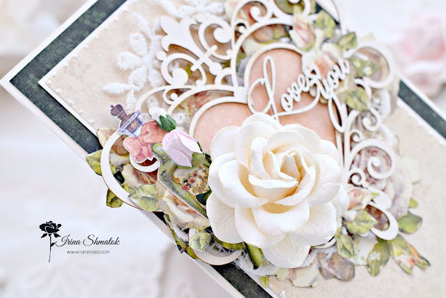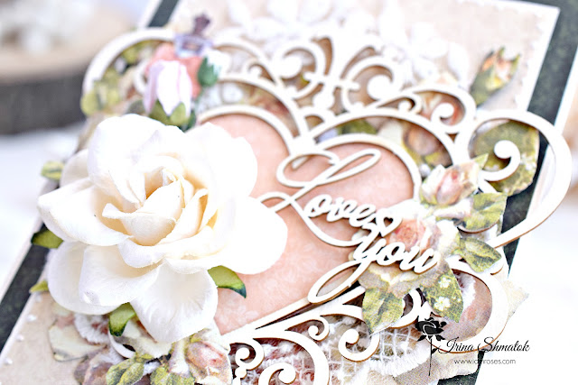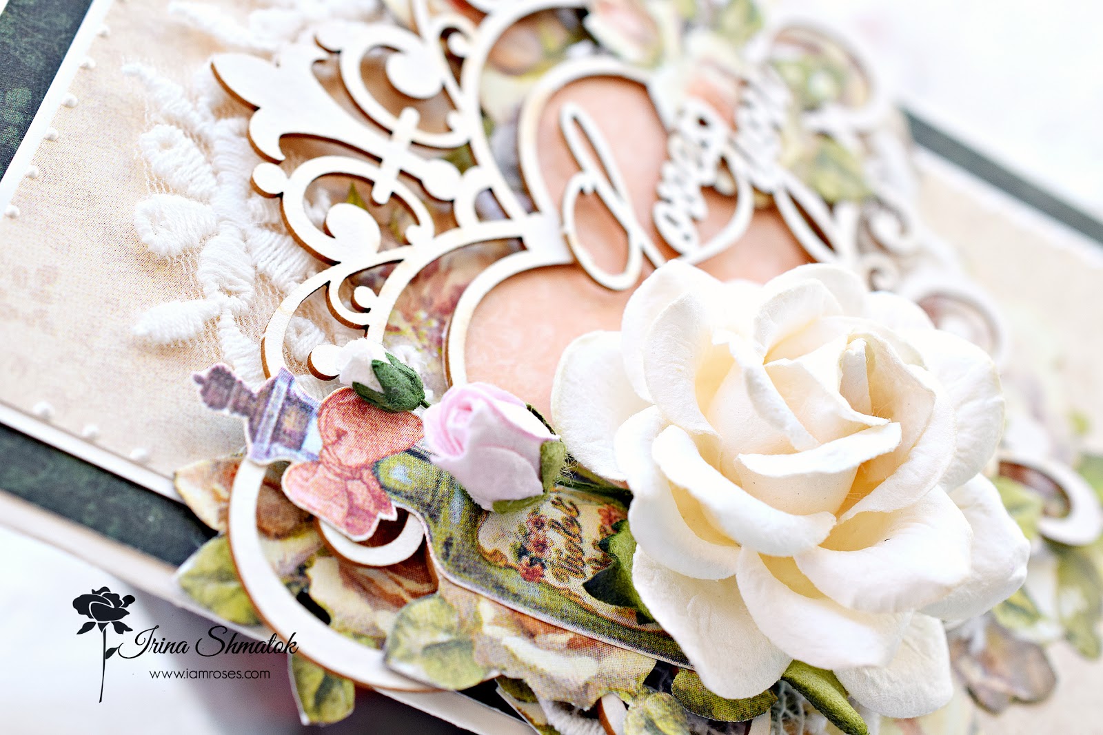 Меня настолько вдохновила коллекция от Graphic45 " Portrait of a Lady " , что решила сделать в комплект еще и открыточку . Все тот-же чипборд и чудесные цветы от