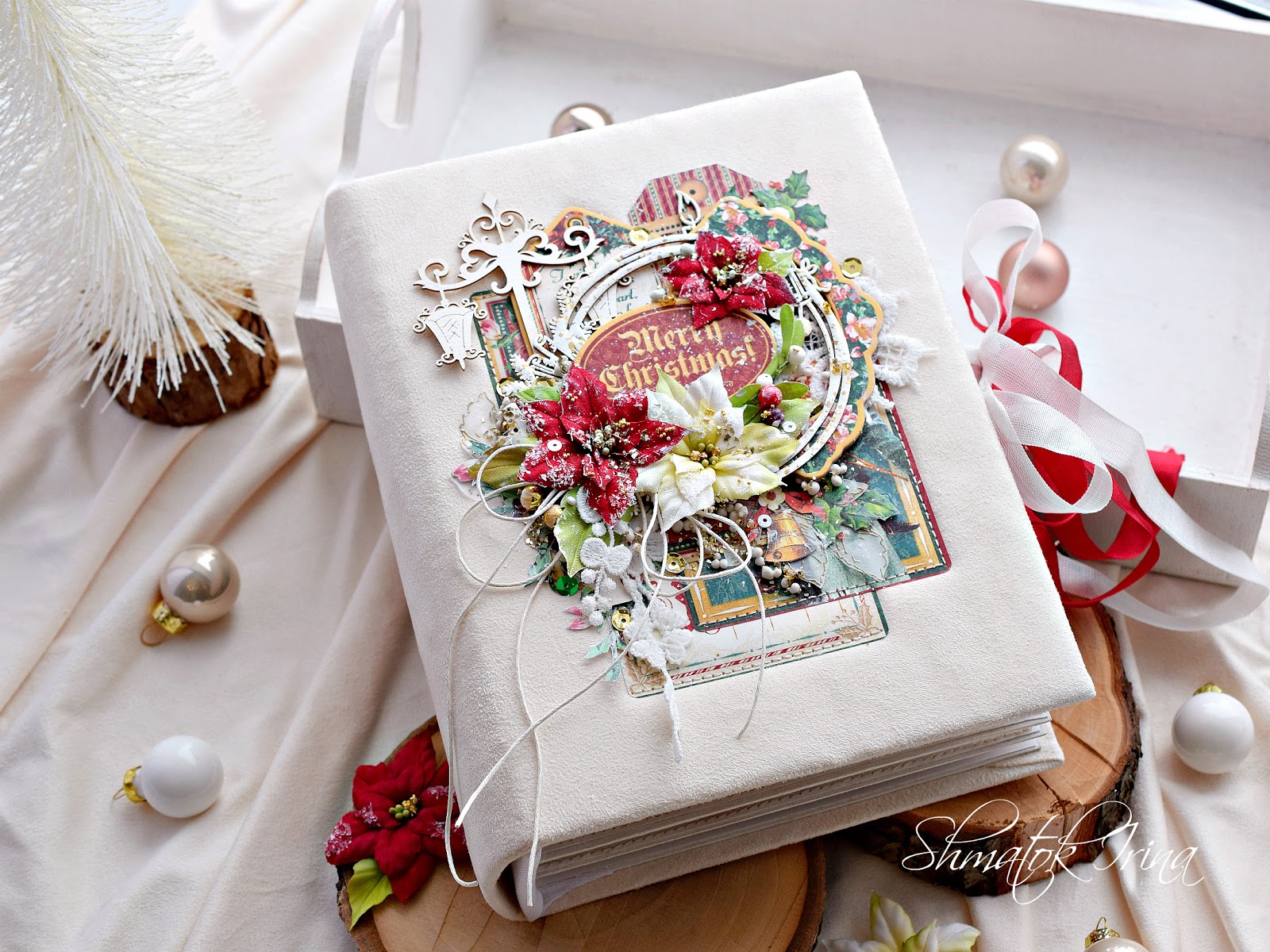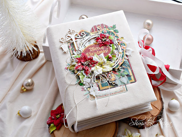 Покажу еще один миник , который творила из старой коллекции Graphic 45. На этот альбомчик у меня ушел один фоновый набор бумаги 15 * 15 и набор чипборда . Как и всегда использовала невероятные тканевые цветочки пуансетии и чипборд от Юли " Рукоделушка "