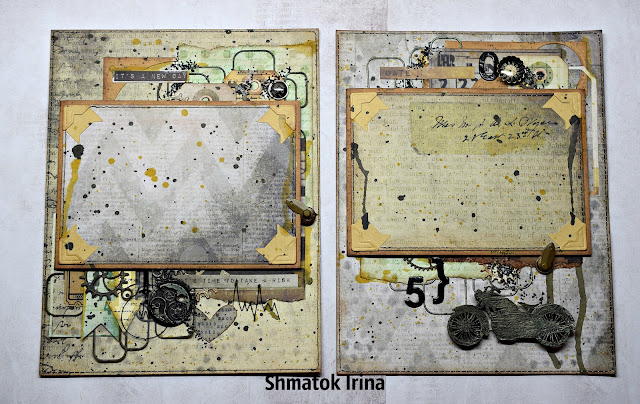 Неожиданно для себя поняла, что нравится стиль "гранж", но альбом будет более сдержанный т.к. готовлю подарок ( знаю точно не поймут " гранж")...но все еще впереди, бумага в запасах есть, оторвусь по полной в другой раз.