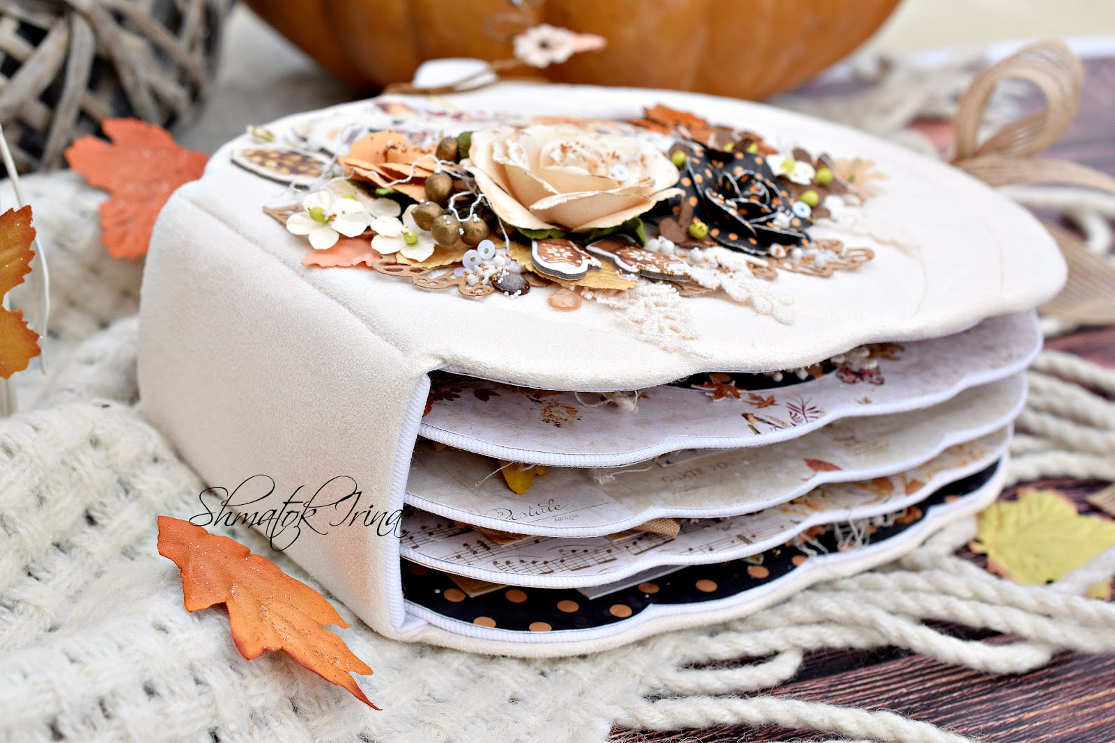 Сегодня покажу вам альбом, который очень люблю. Давненько вышла осенняя коллекция от prima , которую было жалко резать , да идей и вдохновения не было совсем. Но как говорится ..аппетит приходит во время еды ... Миники !!!! До чего же милые эти малыши ! Так и хочется их затискать .Давно хотела сделать мини- альбом в виде тыквы . Нарисовала шаблон, вырезала заготовки и собрала все в переплет . Ну ,а дальше самое увлекательное... декор страничек !!!
