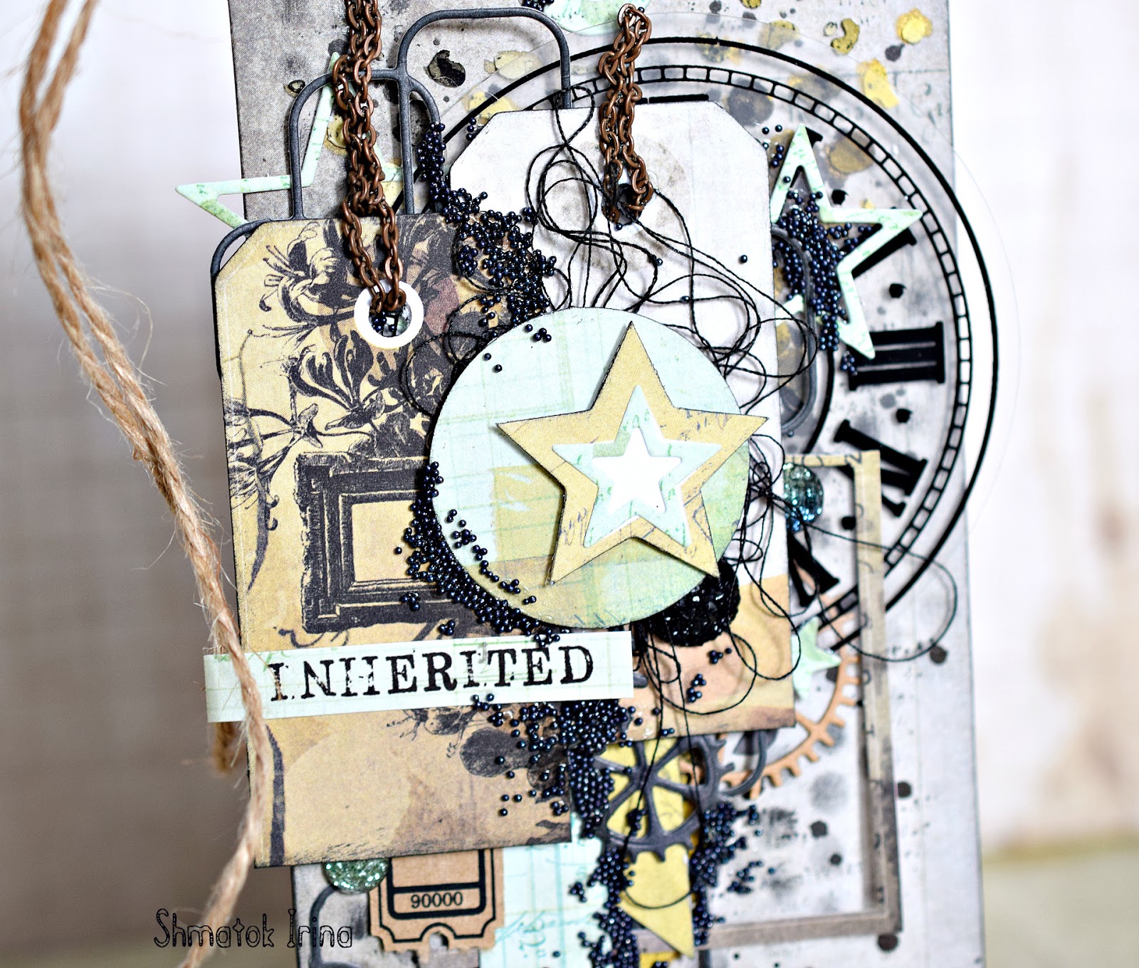 Вдохновение накрыло меня с головой . Решила будет миксмедийный тег, конечно же из Graphic45 "Fairie Dust " и невероятным чипбордом от " Рукоделушка ". Работу делала специально для производителя уникальных цветов I Am Roses . В работе впервые использовала спреи и порошки от Lindisgang , очень понравилось.
